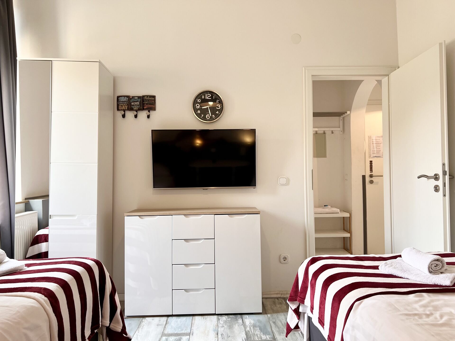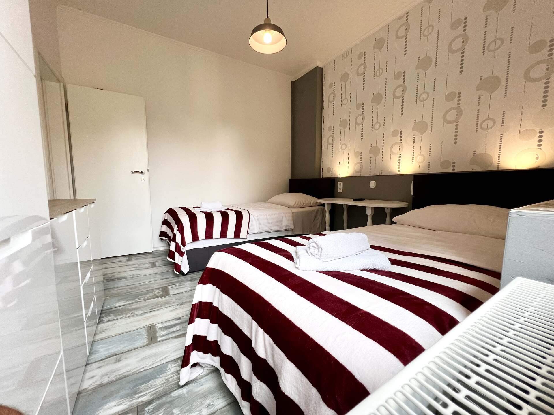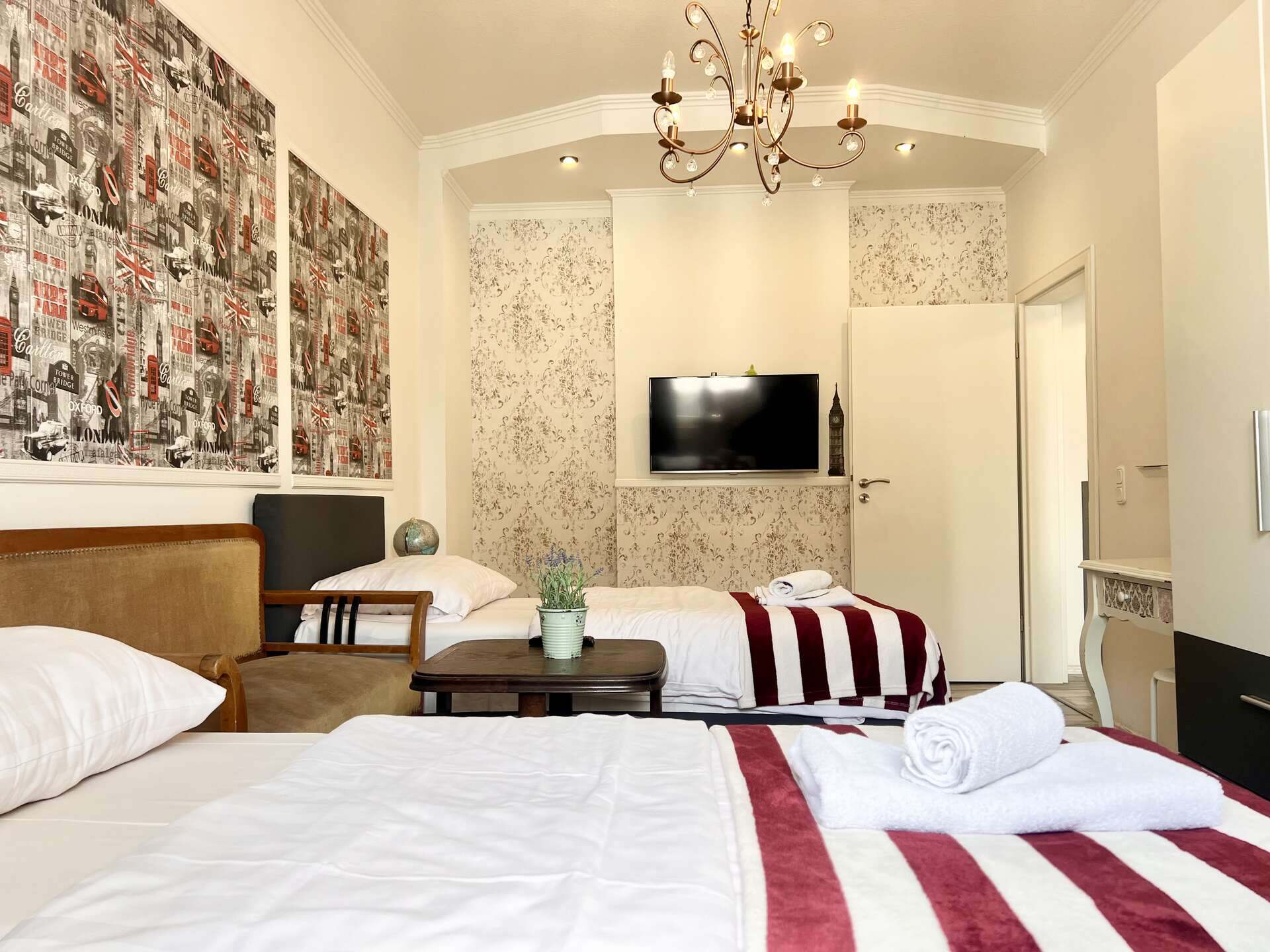 Für eine erholsame Nacht stehen dir 4 stilvoll gestaltete Betten zur Verfügung – insgesamt 4 Betten, die mit hochwertigen Matratzen ausgestattet sind, um dir den bestmöglichen Schlafkomfort zu bieten. Die Einrichtung spiegelt die zeitlose Eleganz Londons wieder, sodass du dich nach einem ereignisreichen Tag in die gemütliche und luxuriöse Umgebung zurückziehen kannst.