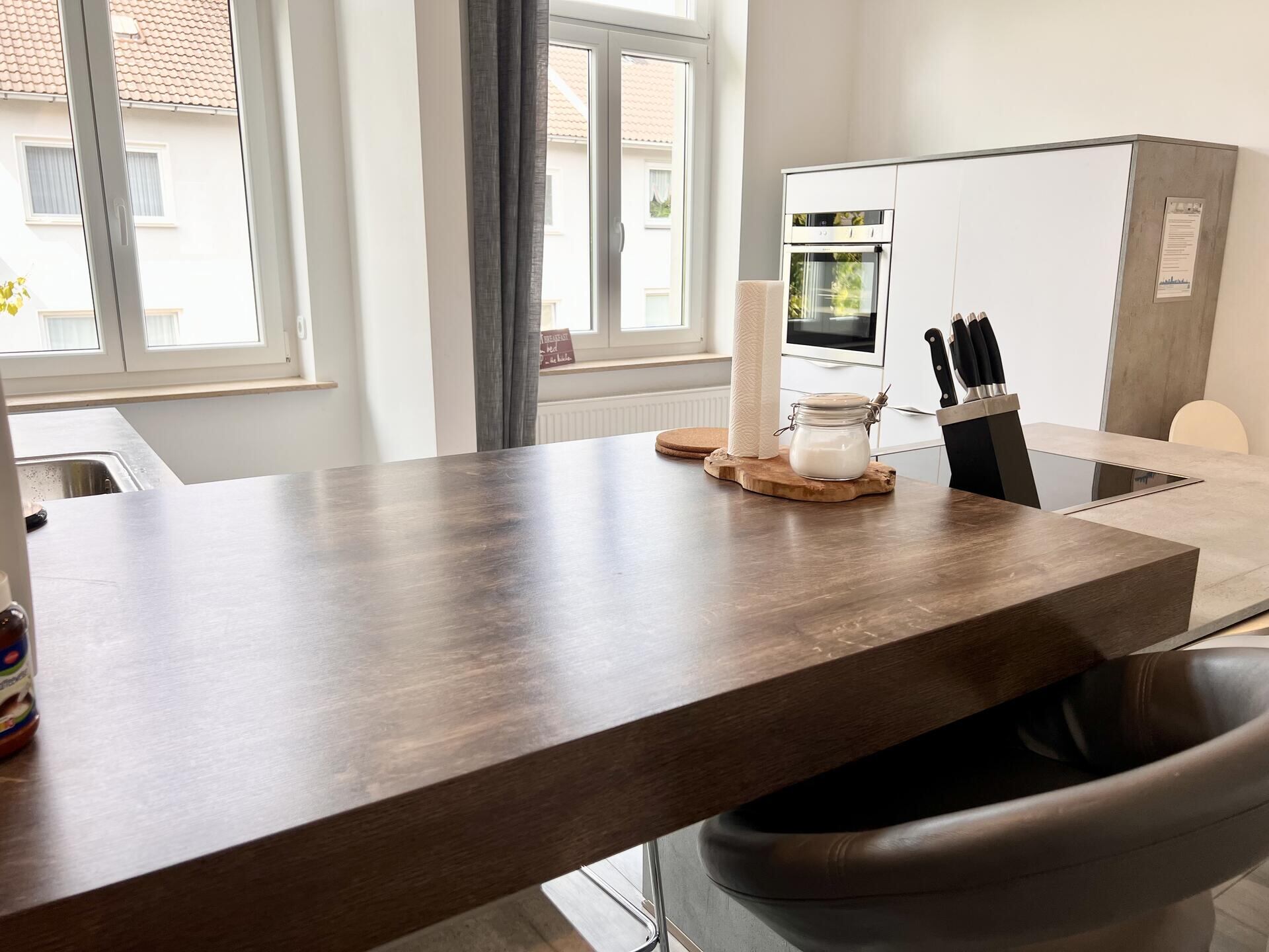 Beginne deinen Tag mit einer frisch gebrühten Tasse Kaffee aus einer der beiden Kaffeemaschinen, während du die einzigartige Londoner Eleganz und den pulsierenden Charme von Essen erlebst. Der britische Stil zieht sich durch die gesamte Wohnung und verleiht ihr eine besondere Atmosphäre, die deinen Aufenthalt unvergesslich macht.