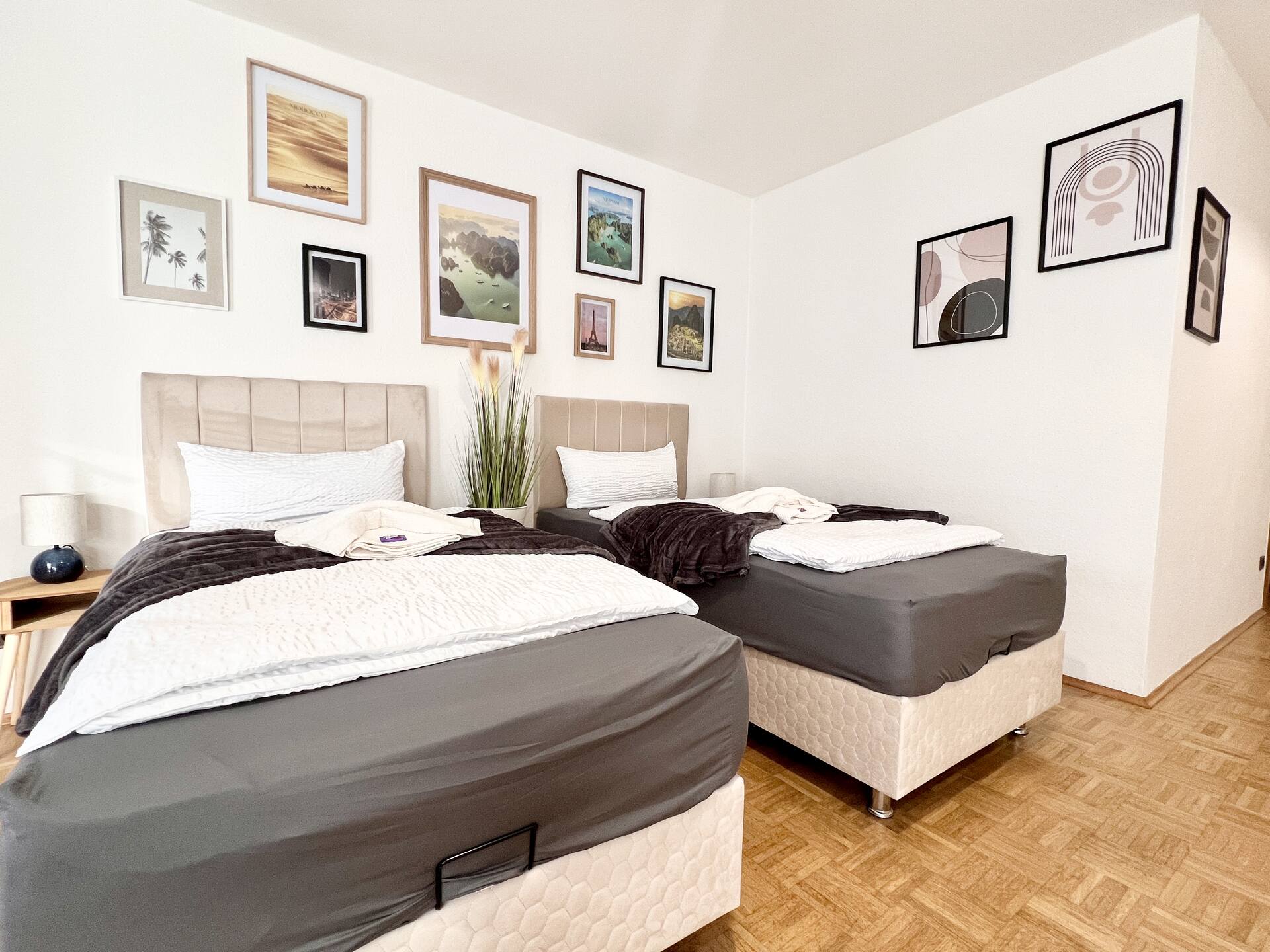 PrimeTimeSuites | Nähe Messe & Hbf Willkommen in Ihrer stilvollen City-Wohnung! Nur 2 Min. zum Hauptbahnhof & 5 Min. zur Messe, perfekt für Geschäftsreisende & City-Trips. Genießen Sie hochwertige Betten, eine voll ausgestattete Küche & Smart-TV. Ein Stellplatz in der Tiefgarage & ein Aufzug sorgen für extra Komfort. Zahlreiche Restaurants, das Aalto-Theater & der Grugapark sind in unmittelbarer Nähe. Erleben Sie Essen zentral, modern & gemütlich – Ihr perfektes Zuhause auf Zeit!